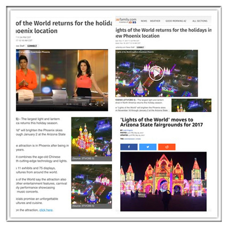 開幕式上菲尼克斯印第安原住民、拉丁裔、華人、墨西哥等各族裔文化藝術(shù)團(tuán)體表演了豐富多彩的歌舞節(jié)目,展示了菲尼克斯多元文化風(fēng)采。瑰麗的花燈、燦爛的民間藝術(shù)和強(qiáng)大的演出陣容,園內(nèi)數(shù)千名美國觀眾無不歡呼雀躍、拍手稱奇。美國亞利桑那州各大主流媒體、華人媒體全面采訪報(bào)導(dǎo)了燈會(huì)開幕式盛況。菲尼克斯當(dāng)?shù)匦侣劇?Now @ 6 》報(bào)道稱“2017世界之光彩燈嘉年華是北美最大的彩燈節(jié),是全球文化集合地,游客仿佛置身于迪士尼中。”