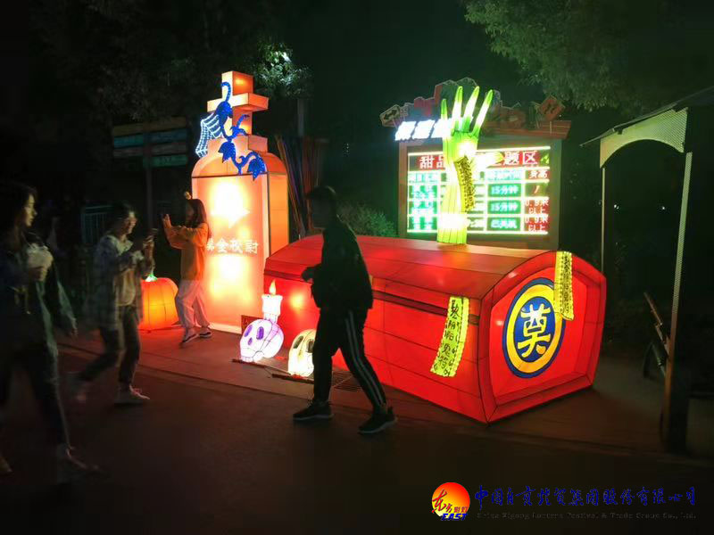 東方彩燈攜手武漢歡樂谷10月12日點亮萬圣節(jié)之夜,精心設(shè)計制作的14組“萬圣節(jié)”燈組驚艷亮相,各種造型鬼魅的燈組引得游客大為驚呼,使得大家躍躍欲試全新的七大鬼屋,勇敢的心油然而生,驚泣的淚隨處可見,過關(guān)的笑精彩無比。