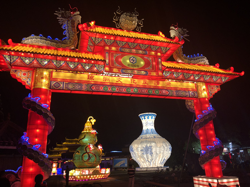 本次燈會以海南風(fēng)情為主題,燈品內(nèi)容與海南建筑、民俗有機(jī)結(jié)合,從構(gòu)圖、造型、工藝都突顯東方彩燈“精、細(xì)、巧、透、靈”的特點(diǎn)。《寶葫蘆》、《丹鳳朝陽》、《萬象更新》、《鄭和下西洋》等主題展區(qū),60余組設(shè)計(jì)新穎的彩燈燈組雄奇宏偉、色彩斑斕,仿佛一卷光影畫軸,向八方游客講述海南故事。