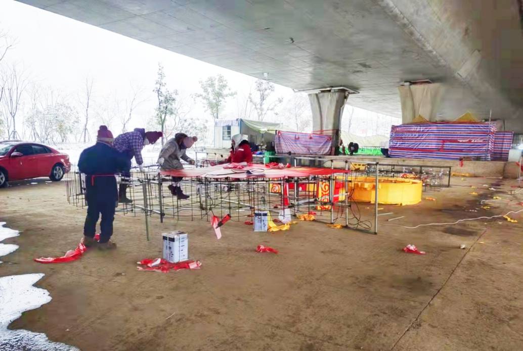 燈貿(mào)集團(tuán)燈組制作團(tuán)隊(duì)從春節(jié)前就已入駐現(xiàn)場(chǎng)。在有限的工期里,幾十名彩燈工匠全天無休,從設(shè)計(jì)、放樣、修改、手工裱糊到組裝焊接,每一個(gè)步驟都精雕細(xì)琢。
